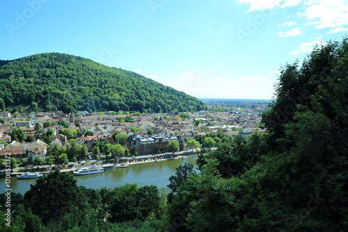 heidelberg, river, forest, hill, town, german, nature, boat, panorama, travel, architecture, water, skyline, green, landscape, tour tourism, building, tree, rooftop, city landscape, scenic, view, downtown, destination, peaceful, outdoors, house, vegetation, blue skies, summer, europa, shore, harbor, dock, residential, tranquil, traditional, urban, sightseeing, park, cruise, reflections, environment, mediaeval, hill, sky, light, air, foliage, grooved