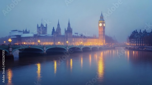 london, big, ben, parliament, house, river thames, river, bridge, city landscape, architecture, england, britain, mist, foggy, urban, scenic, landmark, light, evening, reflections, water, tour tourism, travel, government, european, capital, historical, illuminated, dusky, panorama, skyline, majestic, serene, iconic, tranquil, picturesque, destination, borough, culture, metropolis