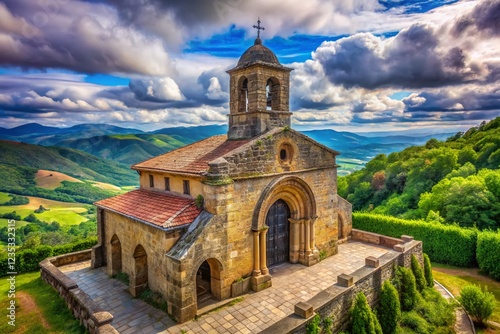 Panoramic View of the Historic Chapel Sancti Spiritus in Roncesvalles, Spain