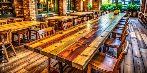 Panoramic Wooden Dining Table Background Texture: Rustic, Vintage, Farmhouse Style Photography