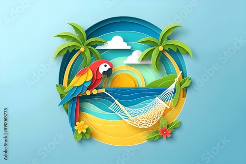 Paper art of parrots and beautiful nature