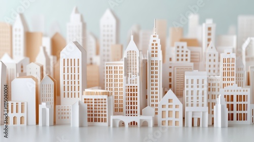 Paper Cityscape Model in Minimalist Style Showcasing Various Architectural Designs, Ideal for Backgrounds, Presentations, and Creative Projects