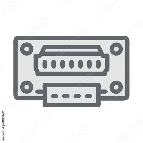 parallel, port, printer, connection, datum, transfer, cable, device, electronic, flat, icon, vector, illustration, printing, tech, computer, peripheral, hardware, connectivity