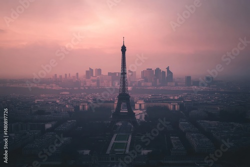 paris, tower, city, sunset, twilight, silhouette, cloudy, pink, purple, foggy, urban, architecture, travel, france, europa, aerial, view, photo, landscape, skyscraper, building, dramatic, light, colours, horizon, atmosphere, mist, haze, modern, historic, romantic, famous, iconic, landmark, vacation, traveler, destination, tour, voyage, tour tourism, viewpoint, panoramic, city landscape, beautiful, amazing, exterior, scenic, photo