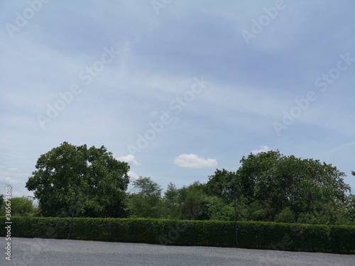 Parking lot sprinkled with gravel on tree bush nature background sky and cloud