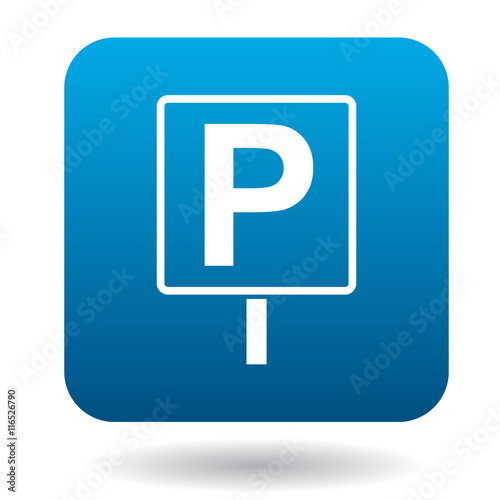 Parking sign icon in simple style in blue square. Transport and service symbol