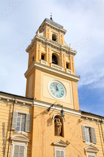 italy, parma, emilia-romagna, landmark, architecture, building, famous, travel, tour tourism, sightseeing, exterior, europa, european, italian, old, vintage, city hall, sundial, town, city, hall, yellow