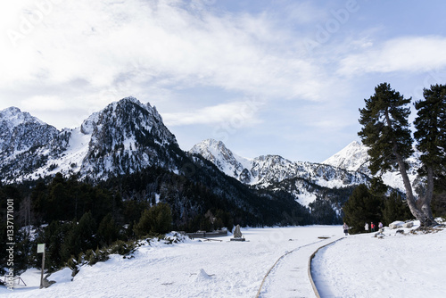Parque Nacional de Aigüestortes i Estany de Sant Maurici nevado y congelado (Pirineo Catalán)
