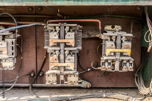 part, machine, old, vintage, aged, dusty, rust-eaten, board, wire, circuit, electric, metal, iron, control, technology, abandoned, industrial, industry