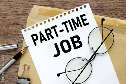 PART TIME JOB. white paper on craft envelope on wood background