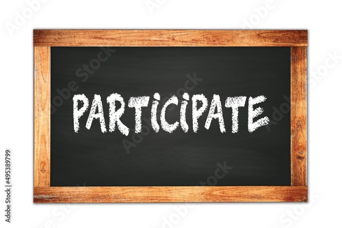 PARTICIPATE text written on wooden frame school blackboard.