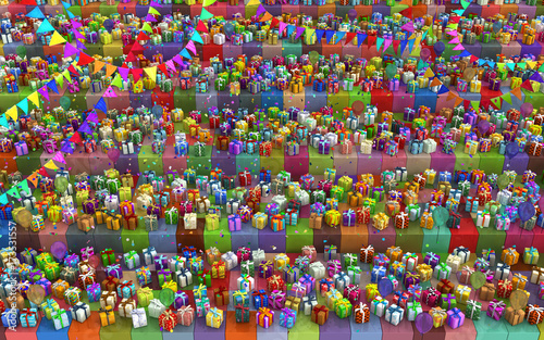 gift, present, fun, excitement, selection, shop, row, shelf, party, balloon, flag, decoration, festive, object, random, mixed, colourful, abundant, abstract, assortment, plenty, celebration, bonus, incentive, offering, box, package, christmas, birthday, group, many, quantity, variety, reward, horizontal, three-dimensional, background, rendering