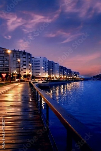 evening, city, water, horizon, sea, city landscape, light, port, view, architecture, littoral, heaven, coast, urban, place, building, landscape, trip, tour tourism, evening, town, dark, sea, maritime, walk, galicia, spain, europa