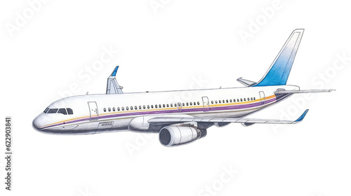 Passenger airplane,hand drawn watercolor, illustration on transparent background