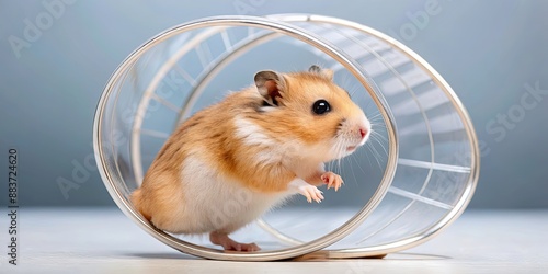 Passionate hamster running on a wheel , enthusiastic, energetic, small pet, rodent, furry, adorable, pet lover