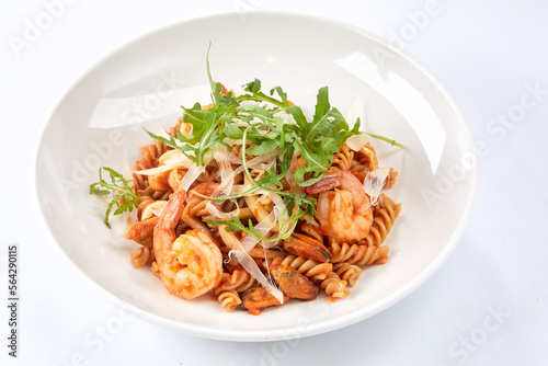 arugula, herb, cheese, cooked, creamy, cookery, delicious, dinner, fettuccine, food, garlic, epicure, healthy, italian, lunch, meal, mediterranean, noodle, parsley, pasta, plate, prawn, prepared, eatery, sauce, seafood, shrimp, spaghetti, tasty