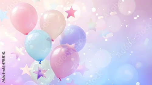 Pastel Balloons and Stars Forming Festive Birthday Background