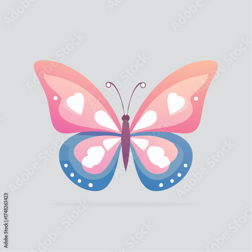 Pastel Butterfly with Heart Accents: A Whimsical Vector Illustration