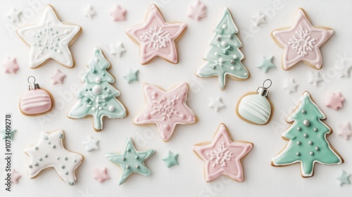 christmas, cookie, holiday, festive, baking, dessert, pastel, pink, green, white, sprinkle, icing, decoration, star, tree, ornament, winter, celebration, food, sweet, homemade, cute, charming, background, texture, pattern, design, pastry, culinary, seasonal, december, tradition, family, children, treat