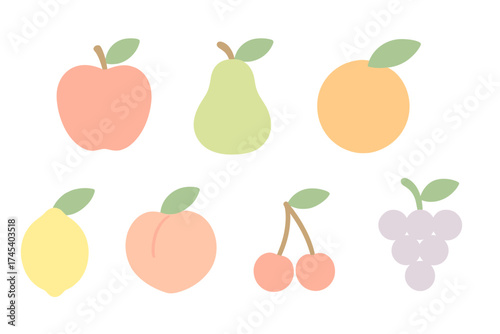 fruit, pastel, pear, orange, lemon, peach, grape, fresh, set, cute, food, healthy eating, nourishment, simple, minimal, isolated, diet, organic, summer, dessert, sticker, colourful, sweet, graphic