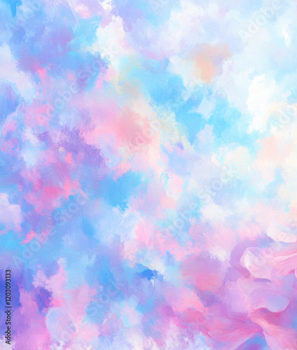 Pastel colored sky painting creating a dreamlike atmosphere. Soft brushstrokes blend pink, blue, and purple hues in a dreamy sky painting, evoking a sense of tranquility and wonder