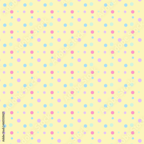 Pastel dots seamless pattern isolated on light yellow background.Colorful polka dot repeat pattern.Cute texture background.