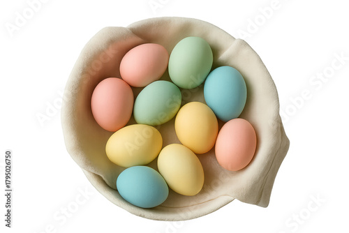 easter, egg, pastel, basket, holiday, celebration, spring, colourful, tradition, top, view, food, decoration, religious, christianity, christian, light, gentle, soft, colours, pale, object, nobody, studio, shot, cut-out, clipping, path, beige, clothes, fabric, textile, traditional, sweet, delicious, festive, cut, out, copy, space, blank, design, element, graphic, resource, transparent, background, isolated, white