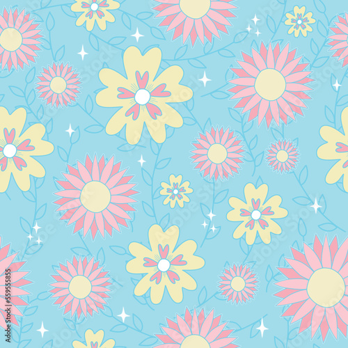 flower, pattern, seamless, floral, vector, flower, spring, design, wallpaper, pink, illustration, nature, decoration, summer, daisy, plant, colours, art, bloom, texture, blossom, set, ornament, beauty, pastel
