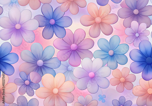 Pastel floral seamless pattern with soft gradient colors 부드러운 그라데이션 색상의 파스텔 꽃 무늬 패턴