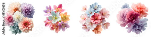 flower, bouquet, pastel, watercolor, floral, arrangement, soft, light, colours, isolated, white, spring, summer, nature, beautiful, delicate, romantic, wedding, greeting card, invitation, decoration, design, art, illustration, painting, botanical, bloom, blossom, pink, purple, blue, orange, aesthetic, trendy, stylish, composition, group, set