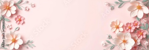 Pastel paper art illustrated frame with delicate floral patterns and geometric shapes in soft hues, artwork, frame