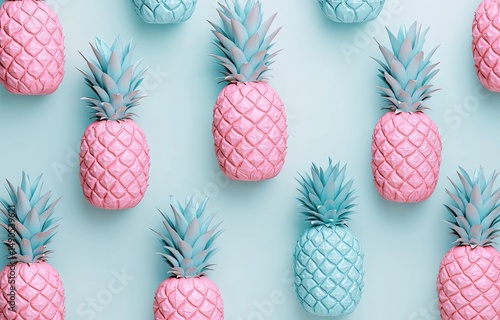 pineapple, pink, blue, pastel, pattern, repeat, background, vibrant, playful, aesthetic, fruit, summer, tropical, design, art, graphic, illustration, texture, colours, bright, cheerful, happy, sweet, delicious, juicy, refreshing, exotic, stylish, modern, minimalist, clean, neat, organised, overhead, topview, food, image, photo, visual, composition, arrangement, object, style, trend, geometric