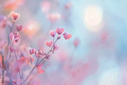 Pastel Pink Heart Shaped Leaves on Soft Focus Background