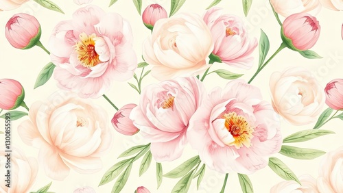 Pastel Pink Peonies Floral Seamless Pattern Background