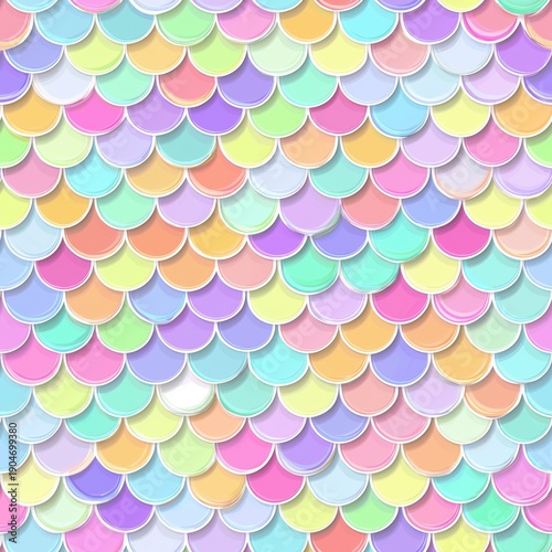 Pastel rainbow mermaid scales seamless pattern background. Cute iridescent texture creating a dreamy fantasy wallpaper for packaging
