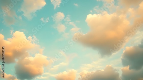 sky, cloud, pastel, sunset, fluffy, light, colours, warm, gold, orange, yellow, blue, turquoise, dreamy, peaceful, nature, beauty, heavenly, gentle, soft, blithe, dramatic, colourful, cumulus, sunlit, high, huge, atmosphere, horizon, view, afternoon, evening, tranquil, bright, airy