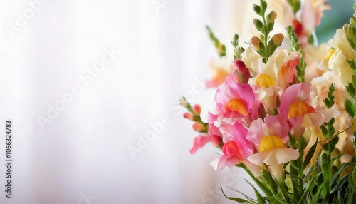 Pastel Snapdragon Bouquet: Delicate pastel snapdragons in a charming bouquet, bathed in soft light. Perfect for adding a touch of elegance and serenity to any design.