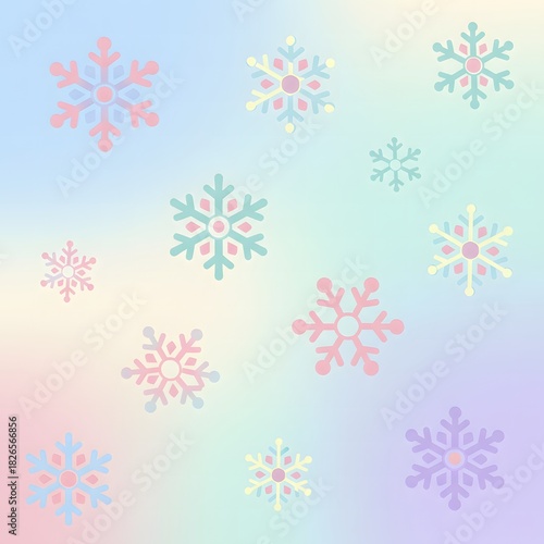 snowflake, pastel, winter, background, pattern, gradient, colourful, festive, season, snow, frost, ice, cold, whimsical, soft, light, aesthetic, design, graphic, illustration, abstract, holiday, christmas, new year, dreamy, serene, decorative, texture, celebration