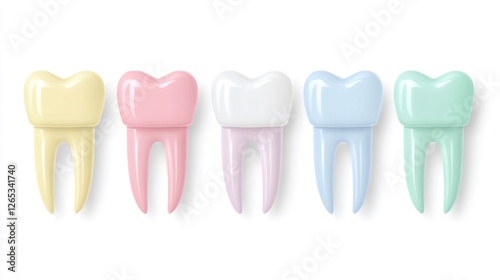 Pastel teeth shades, dental, healthcare, illustration, white background
