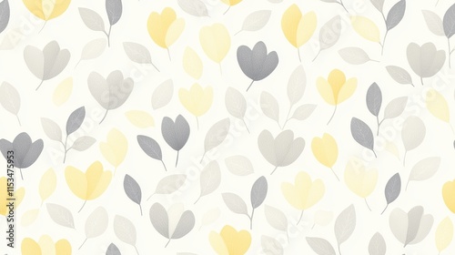 pattern, seamless pattern, floral, seamless, background, texture, design, pastel, yellow, grey, grey, flower, leaf, botanical, spring, summer, delicate, soft, elegant, pretty, feminine, wallpaper, fabric, textile, print, illustration, surface, repeat, motif, artwork, style