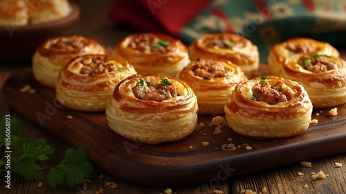 Paszteciki Meat Filled Pastries on Wooden Board (Polish Cuisine)