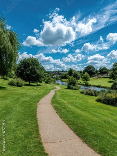 grass, tree, sky, cloud, path, nature, summer, day, green, field, paseo, park, outdoors, sunshine, landscape, view, scenery, horizon, tranquil, peaceful, calm, serene, light, shadow, ground, plant, foliage, growth, vista, distance, rural, clear, beauty, beautiful, bright, sunny, pathway, lawn, garden, space, open, fresh, air, season, spring, way, trail, destination, travel
