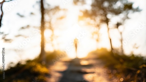 "Pathway to Success Blur" – Blurred trail leading to a summit, with a climber silhouette in the background.