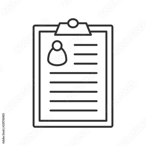 vector, line, art, contour, drawing, outline, linear, thin, illustration, logotype, concept, flat, symbol, icon, web, pictogram, design, isolated, signs, clip art, patient, card, document, information, paper, user, person, resume, clipboard, cv, vita, cv, business, profile, contract, application, interview, job, employment, page, medicals, report, text, personal, human, note