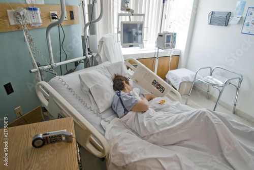 Patient recuperating from surgery in hospital room