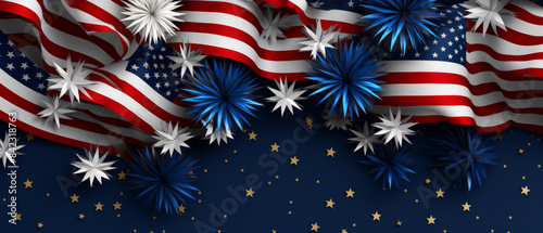 Patriotic celebration background with American flag and star decorations, perfect for Independence Day or patriotic events.