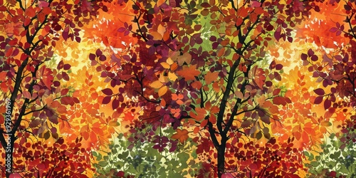 pattern of autumn trees, each leaf with its own unique texture and color, creating an intricate tapestry that captures the beauty of fall foliage in vibrant hues Generative AI