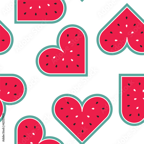 Pattern of Heart shaped watermelon illustration on isolated white background
