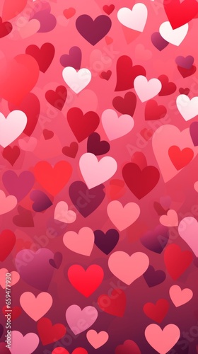 Pattern of pink and red hearts. Red background. Top view, flat lay. Valentine's Day.