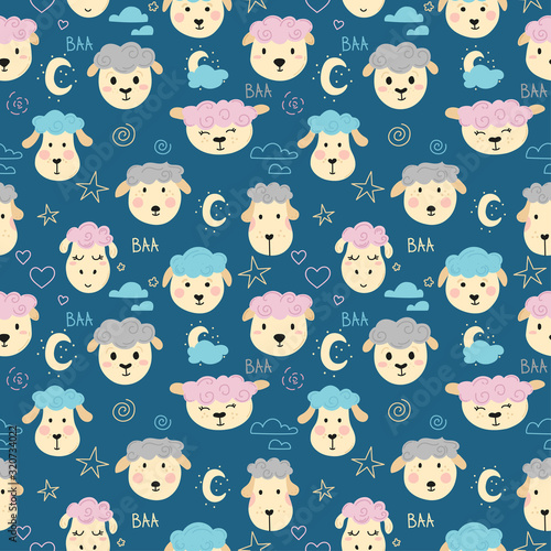 Pattern with cute lambs at night for fabrics, wrapping paper and baby products.